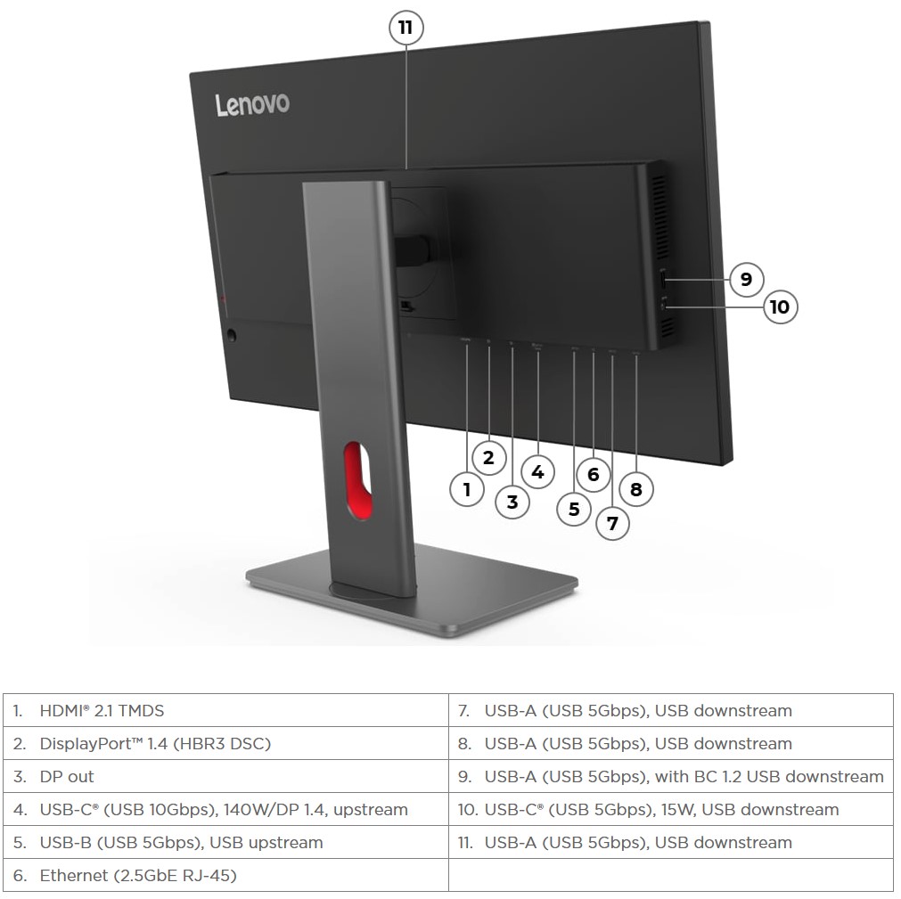 1x USB-C (USB 10Gbps,DP 1.4 Alt Mode HBR3, PD3.1 140W, USB upstream)