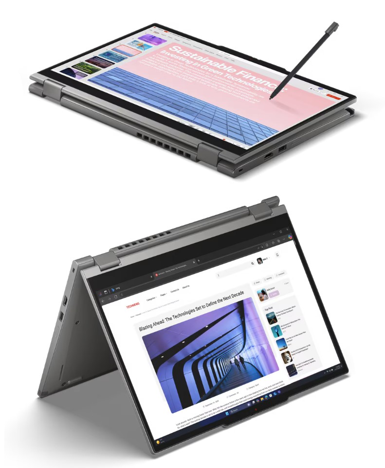 Durch das 360° Yoga-Scharnier verwandelst du dein Notebook im Handumdrehen in ein Tablet, Stell- oder Zeltmodus – perfekt für Präsentationen, Notizen oder kreatives Arbeiten. Der integrierte Stift mit 4096 Druckstufen lädt sich direkt im Gehäuse auf und ist immer einsatzbereit. Mit Wi-Fi 7, LTE-Modul, Fingerabdrucksensor und IR-Kamera für Windows Hello bist du flexibel, schnell und sicher unterwegs.