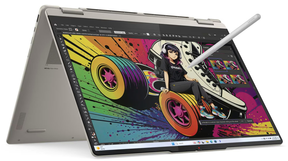 Dank 360-Grad-Scharnier wechselst du mühelos zwischen Laptop-, Tablet- und Zeltmodus. Dolby Atmos Sound, ein ausdauernder Akku und viele praktische Extras wie Fingerabdrucksensor, IR-Kamera, Wi-Fi 7 und recyceltes Aluminium machen das Yoga 7 zu einem rundum durchdachten Gerät.